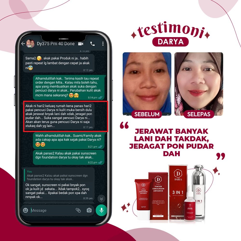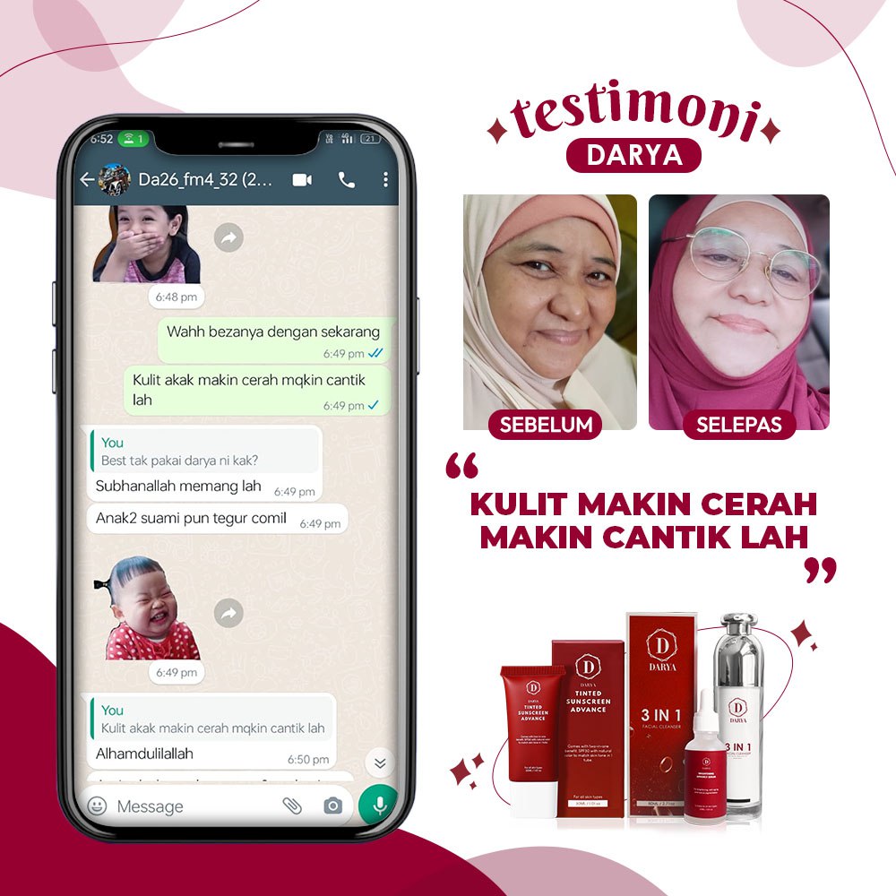 “Saya sangat yakin dengan keberkesanan pencuci muka dan serum Darya. Memang rugi sangat siapa yang belum cuba”